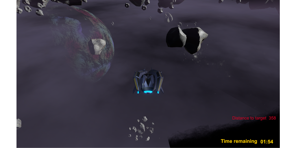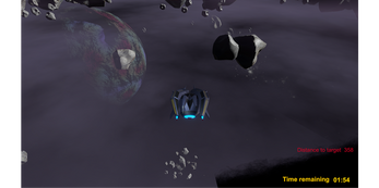 The player must navigate a mined area. As the mines approach, interference occurs. The player can shoot at the mines. Controls are provided by the WASD and SPACE keys. The level has no ending.