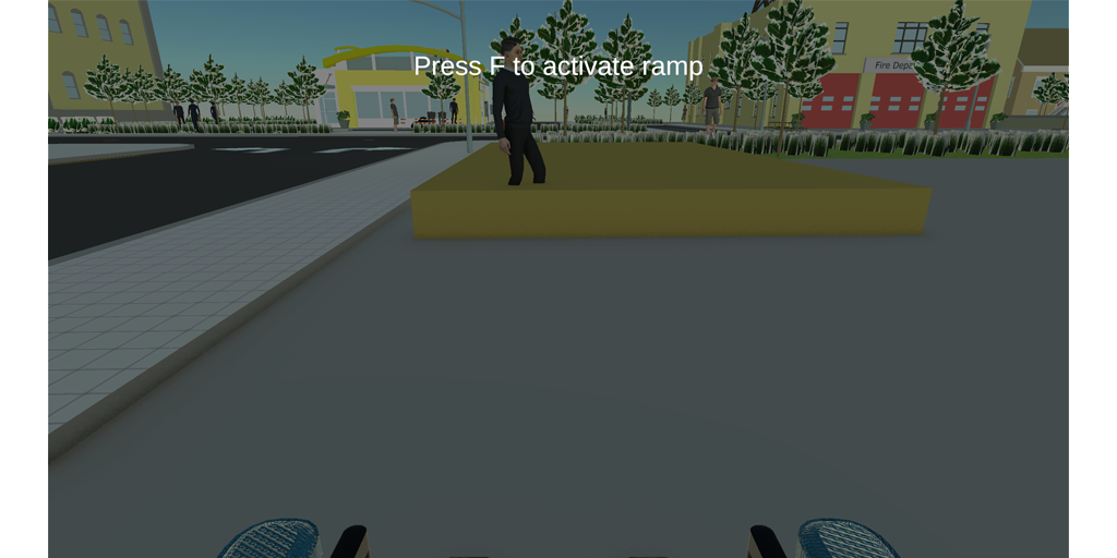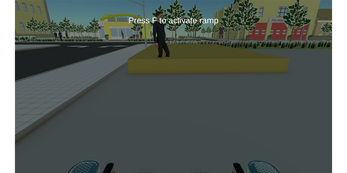 An experimental prototype demonstrating the concept. The main goal is to convey to the player the experience of a person with limited mobility, deepening their understanding of the importance of infrastructure that increases mobility for those with disabilities. Each wheel is controlled separately using the WS and IK keys.